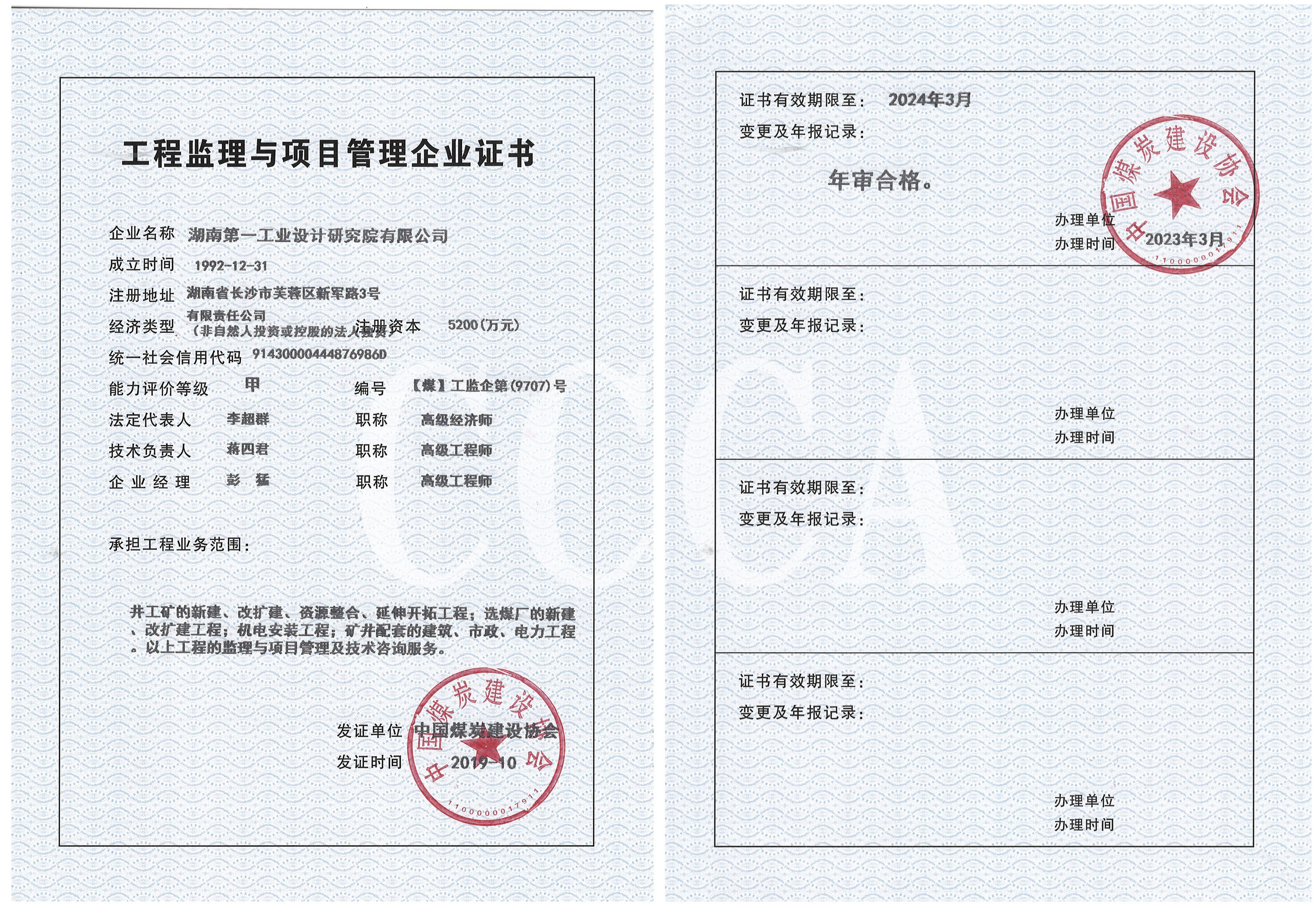 工程監(jiān)理資質(zhì)證書(礦山工程監(jiān)理乙…